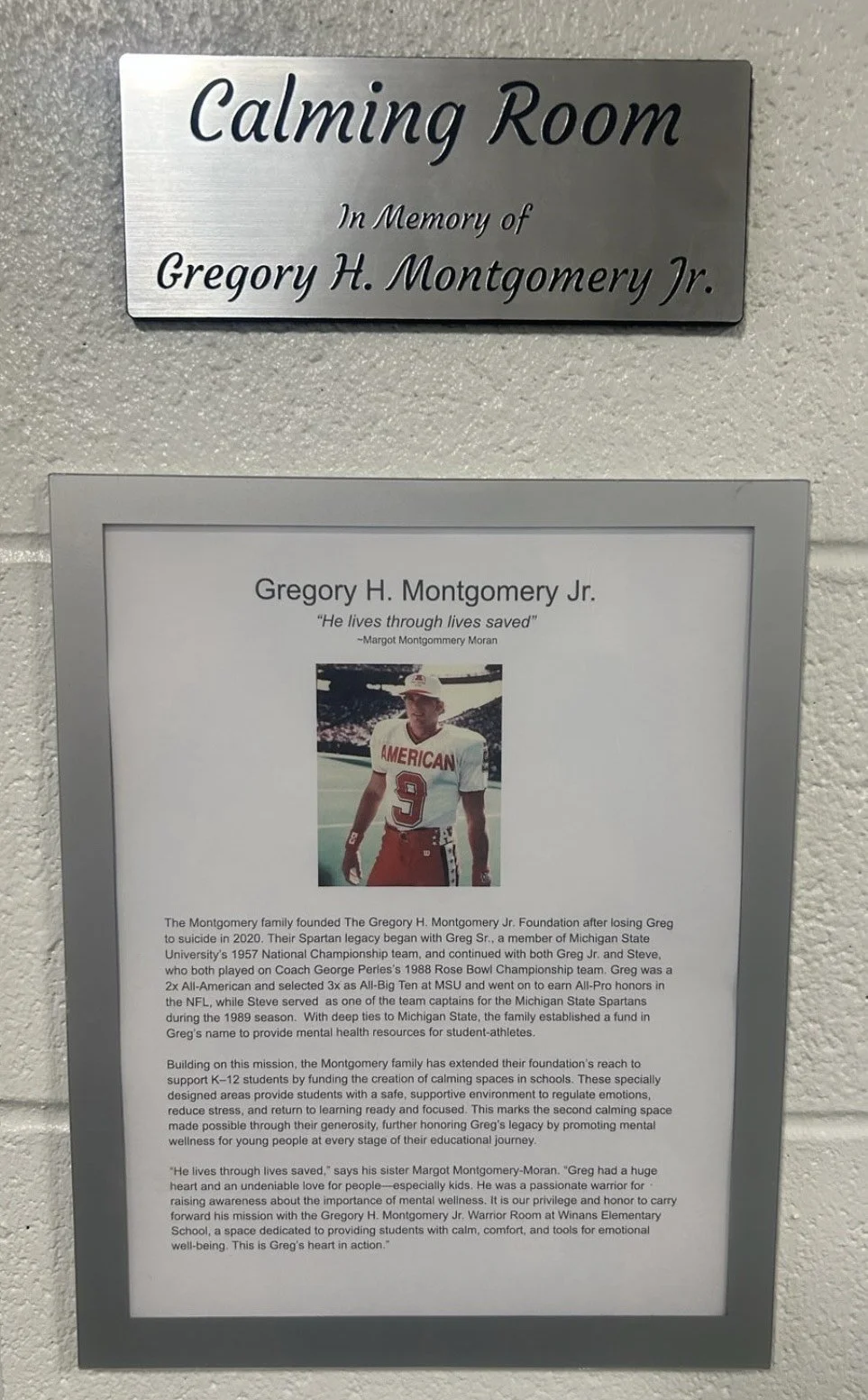 September is Suicide Prevention Awareness Month. Both Michigan State and Minnesota wore Greg’s logo to raise awareness for suicide prevention when they faced each other in Spartan Stadium. The foundation has a fund in Greg’s name @ Michigan State for mental health resources for student athletes. They also kicked off Flex & Flow an annual community event to help stop stigma, and share mindful movement practices.